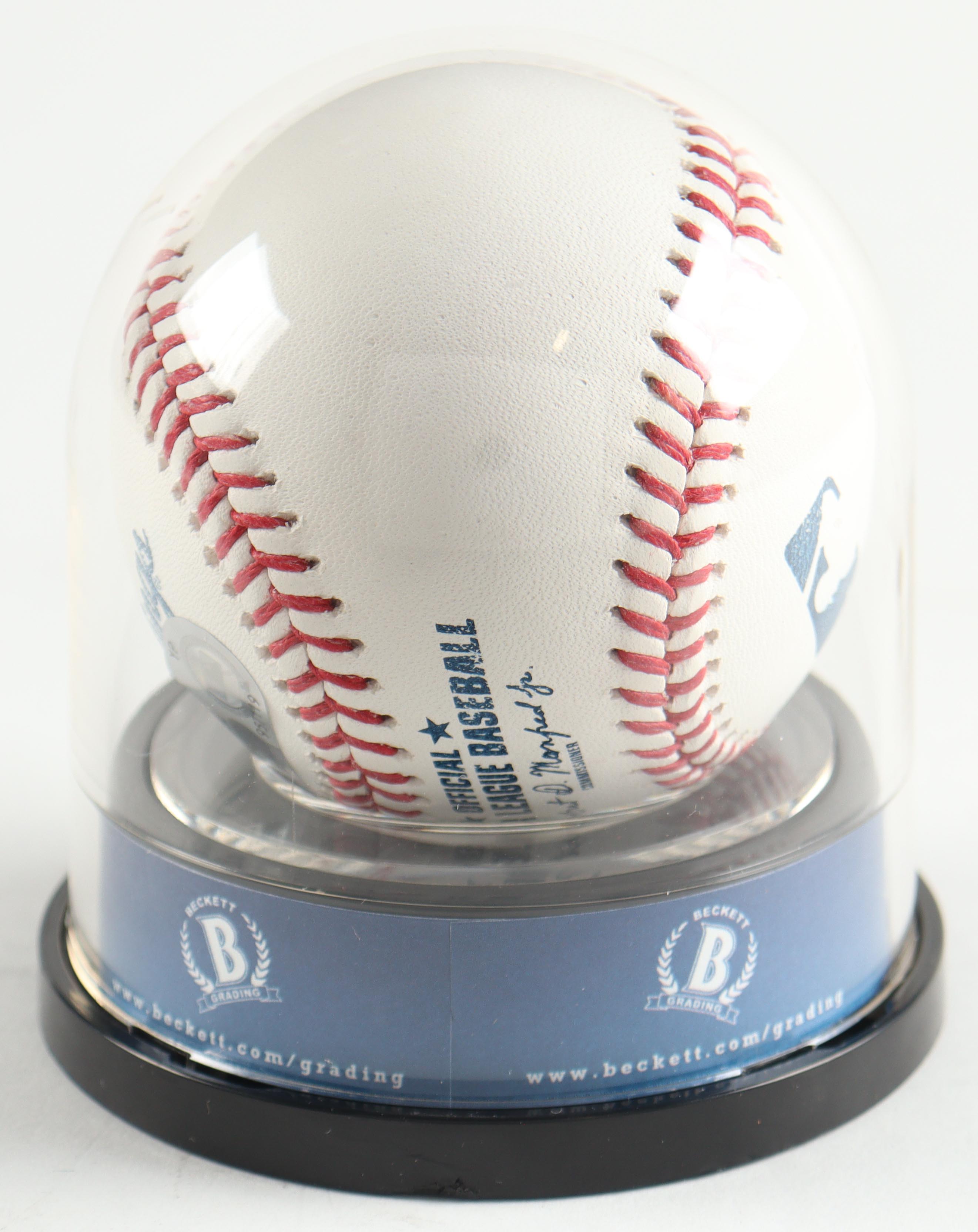 The baseball has been authenticated and encapsulated by Beckett (BGS) and also includes an official MLB Authentication hologram for authenticity purposes.