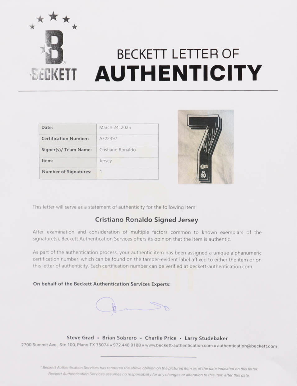 The autograph includes an official Beckett Authentication Services hologram and matching LOA for authenticity purposes.