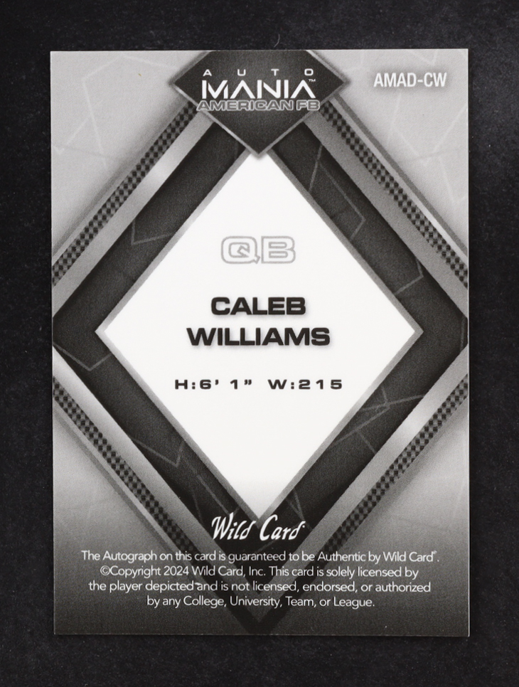Caleb Williams 2024 Wild Card Automania American FB Diamond Americana Prismatic #AMADCW #4/5 RC