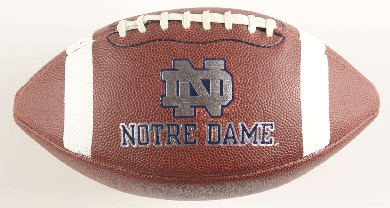 Adidas Notre Dame Fighting Irish Logo Silver Stamped football. Display stand is included in the listing as shown above and the item is unsigned.
