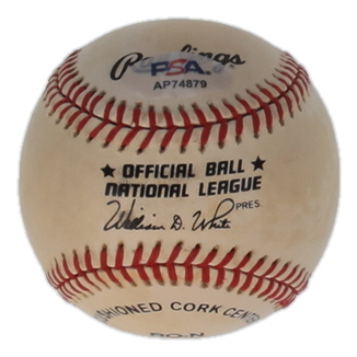 Rawlings Official National League baseball. Has been hand-signed by Ralph Kiner (D. 2015, Pittsburgh Pirates, HOF). Please note, ball is naturally toned and stained. Refer to photos for more details.