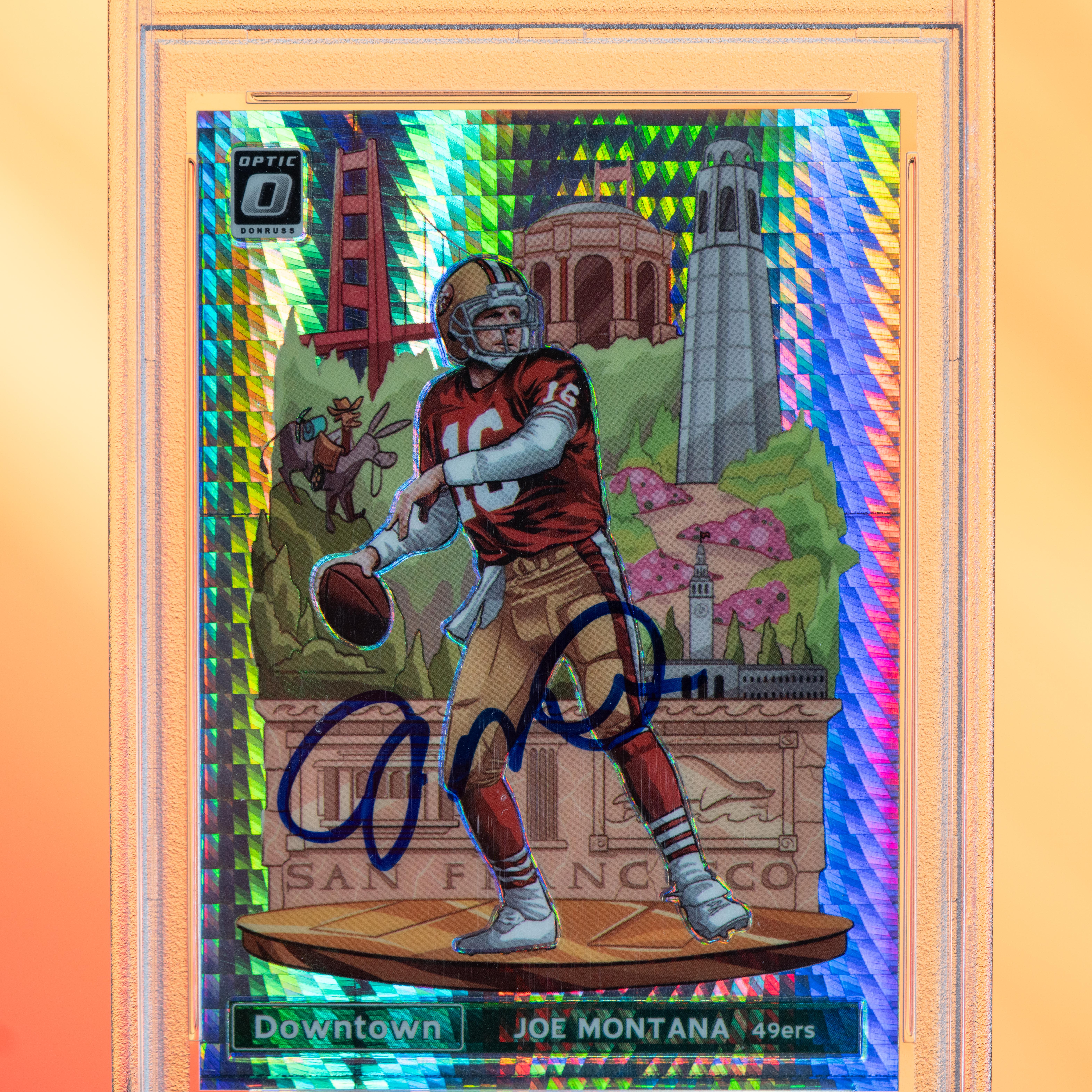 Joe Montana Signed 2019 Donruss Optic Downtown #DT14 (PSA)