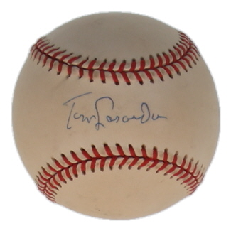 Rawlings Official National League baseball. Has been hand-signed by Tommy Lasorda (D. 2021, Brooklyn Dodgers, HOF). Please note, ball is naturally toned and stained. Refer to photos for more details.