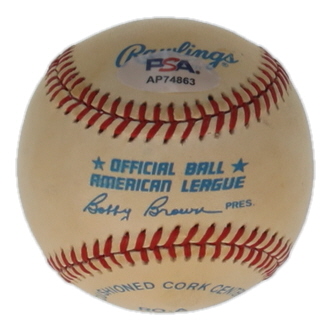 Rawlings Official American League baseball. Has been hand-signed by Luis Aparicio (Chicago White Sox, HOF). Please note, ball is naturally toned and stained. Refer to photos for more details.
