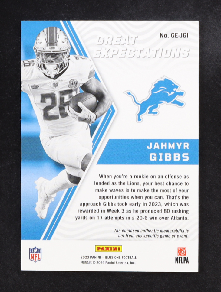 Jahmyr Gibbs 2023 Panini Illusions Great Expectations Materials #13 RC