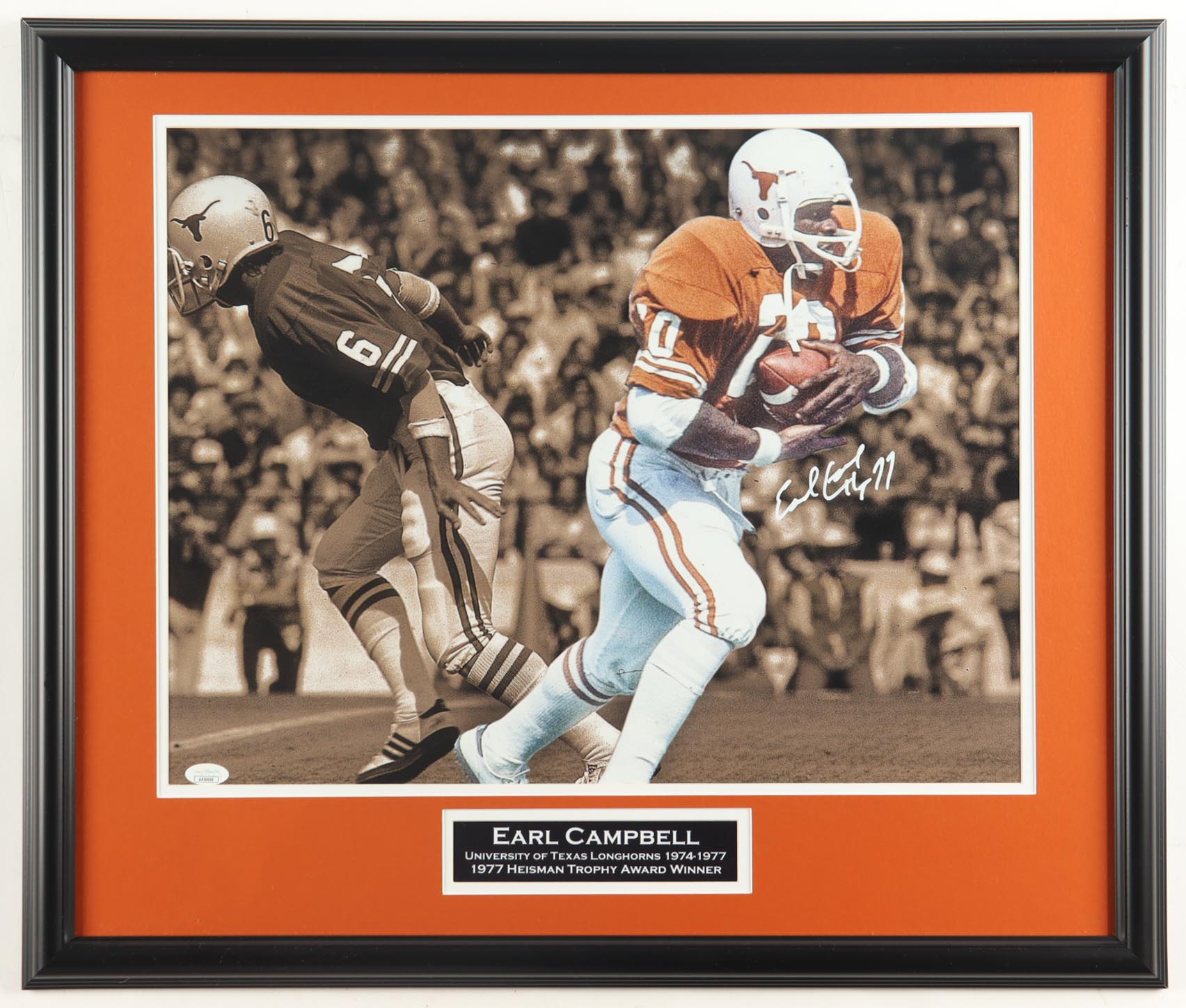 Earl Campbell Signed Texas Longhorns Custom Framed Photo Display Inscribed "HT77" (JSA)