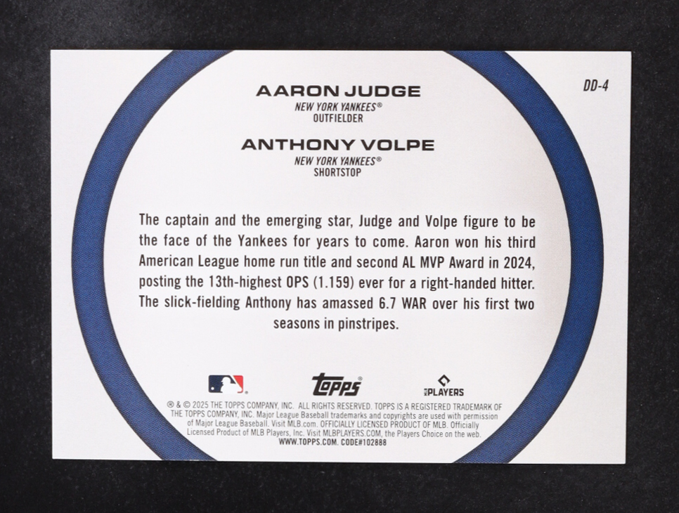 Anthony Volpe / Aaron Judge 2025 Topps Dynamic Duos Green Foil #DD4 #96/99