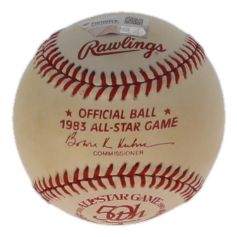 Rawlings Official 1983 All-Star game baseball. Has been hand-signed by Johnny Bench (Cincinnati Reds, HOF). Please note, ball is naturally toned and stained. Refer to photos for more details.