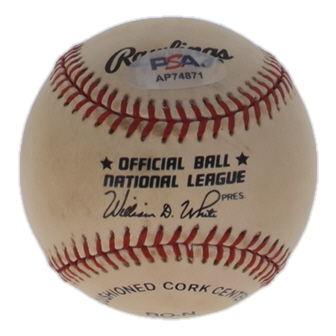 Rawlings Official National League baseball. Has been hand-signed by Mike Schmidt (Philadelphia Phillies, HOF). Please note, ball is naturally toned and stained. Refer to photos for more details.