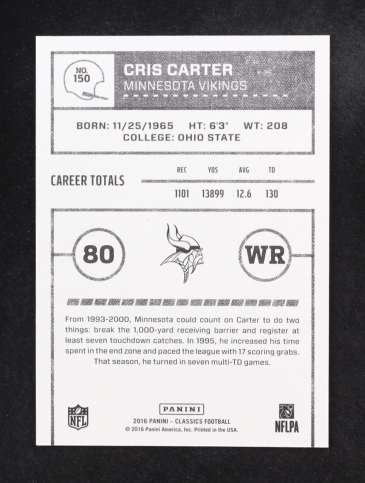 Cris Carter 2016 Classics Timeless Tributes Gold #150 #10/10