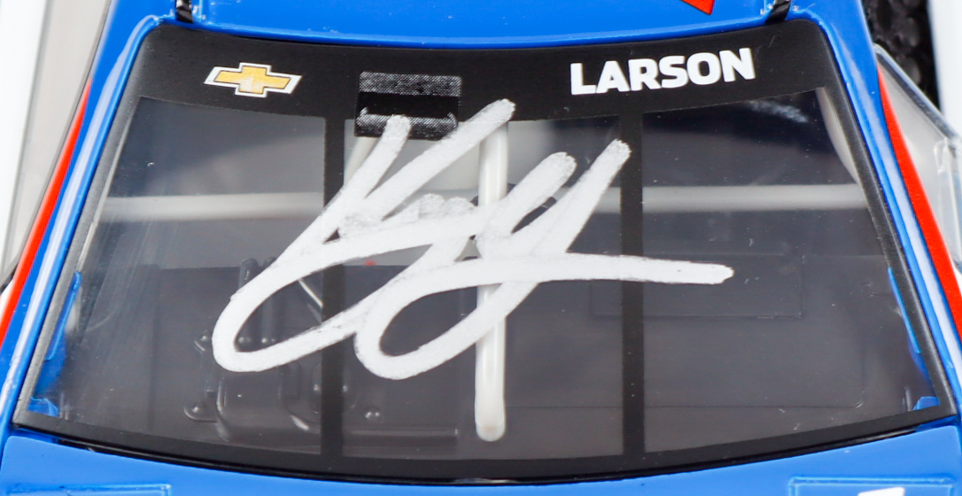 NASCAR premium die-cast car has been hand-signed on the windshield by Kyle Larson.