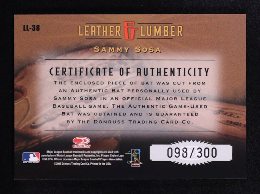 Sammy Sosa 2003 Donruss Studio Leather & Lumber Memorabilia Bat #LL-38 #098/300