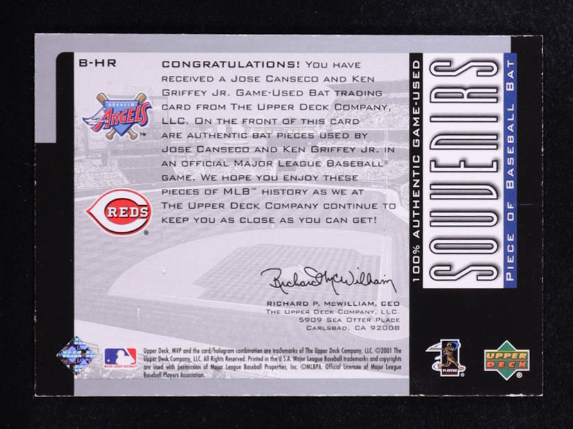 Jose Canseco / Ken Griffey Jr. 2001 Upper Deck MVP Souvenirs Dual Game-Used Bat #B-HR