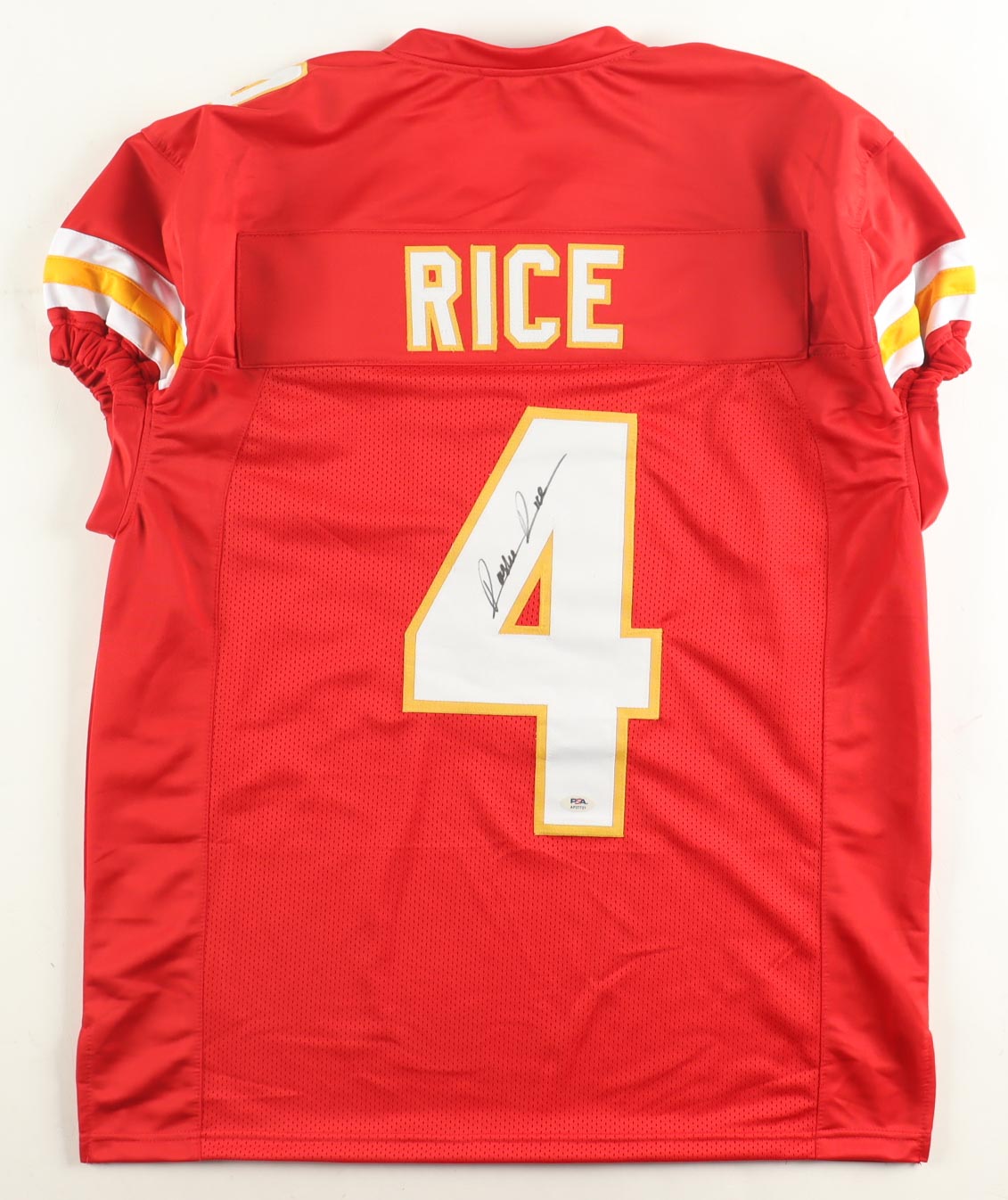 Custom jersey with everything sewn on, size XL. Hand-signed by Rashee Rice.