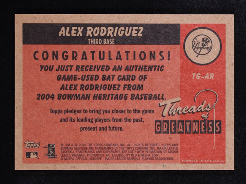 Alex Rodriguez 2004 Topps Bowman Heritage Threads Of Greatness Game-Used Bat Memorabilia #TG-AR