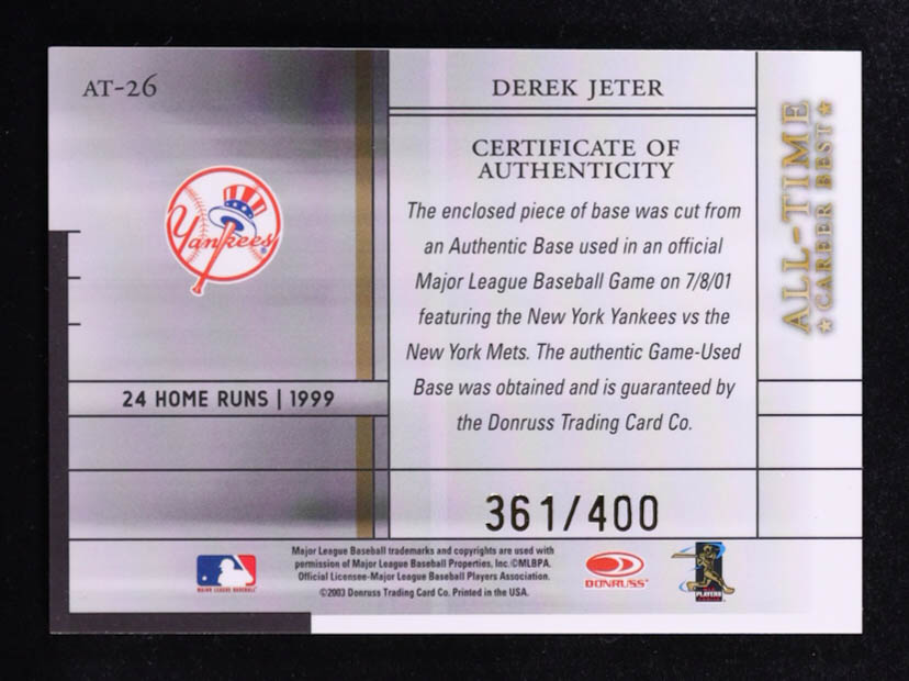 Derek Jeter 2003 Donruss Elite All-Time Career Best Game-Used Base #AT-26 #361/400