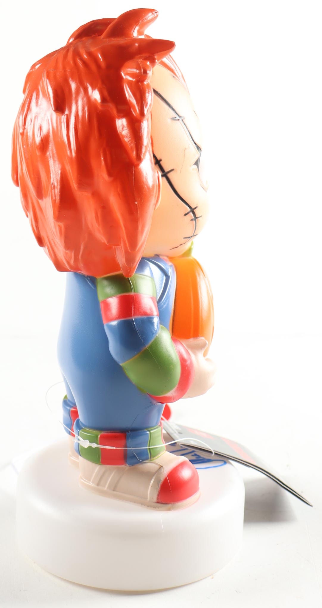 Replica "Child's Play" Chucky character lamp measures approximately 12" in height. Hand-signed by (Andy Barclay). See photos for more details.