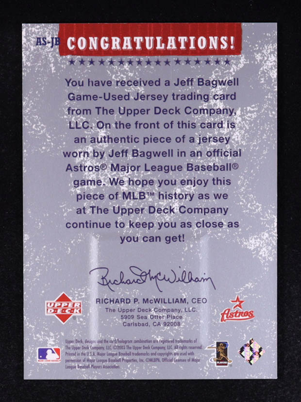 Jeff Bagwell 2003 Upper Deck Authentic Stars Jersey Swatch #AS-JB