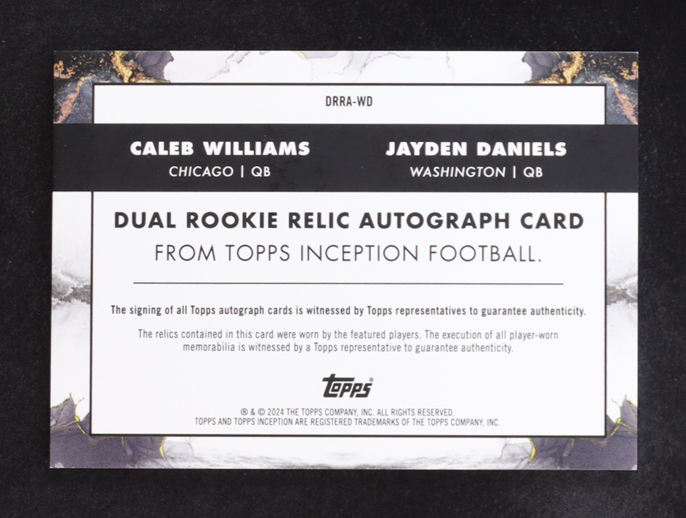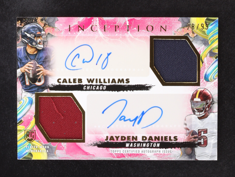 Caleb Williams / Jayden Daniels 2024 Topps Inception Dual Rookie Relic Autographs Magenta #DRRAWD #28/99 RC