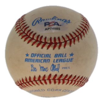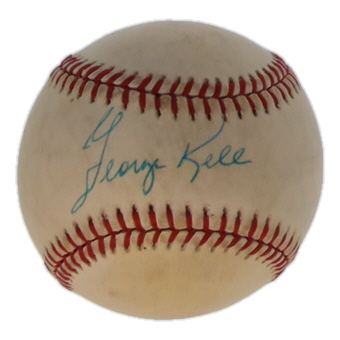 Rawlings Official American League baseball. Has been hand-signed by George Kell (D. 2002, Detroit Tigers, HOF). Please note, ball is naturally toned and stained. Refer to photos for more details.