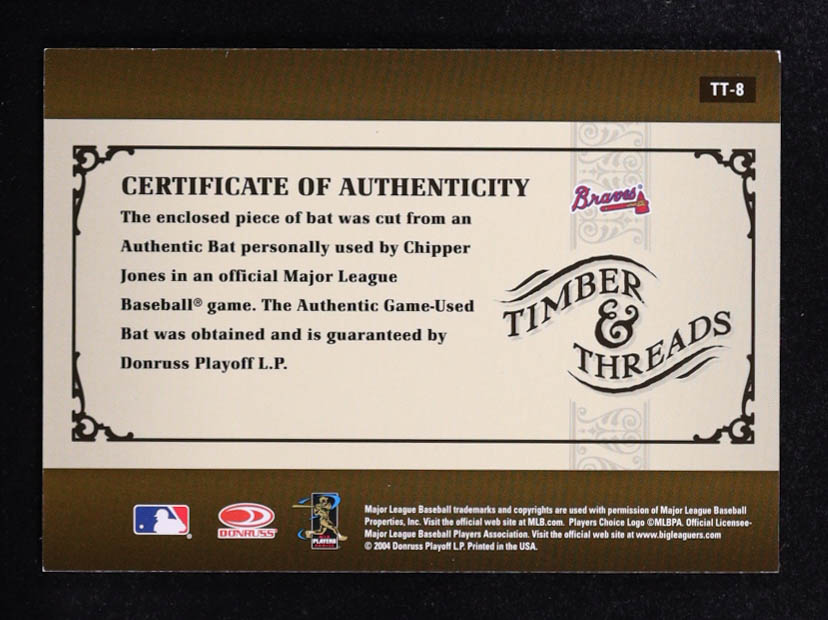Chipper Jones 2005 Donruss Timber & Threads Game-Used Bat #TT-8