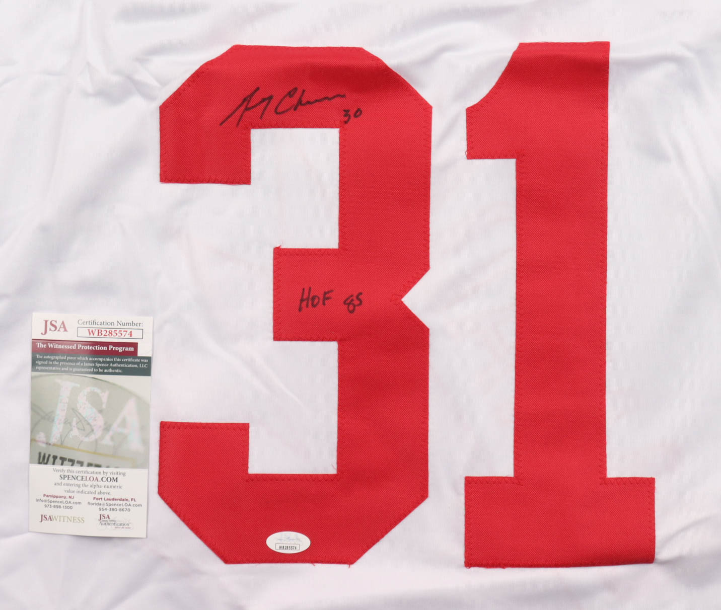 Gerry Cheevers Signed Jersey Inscribed "HOF 85" (JSA)