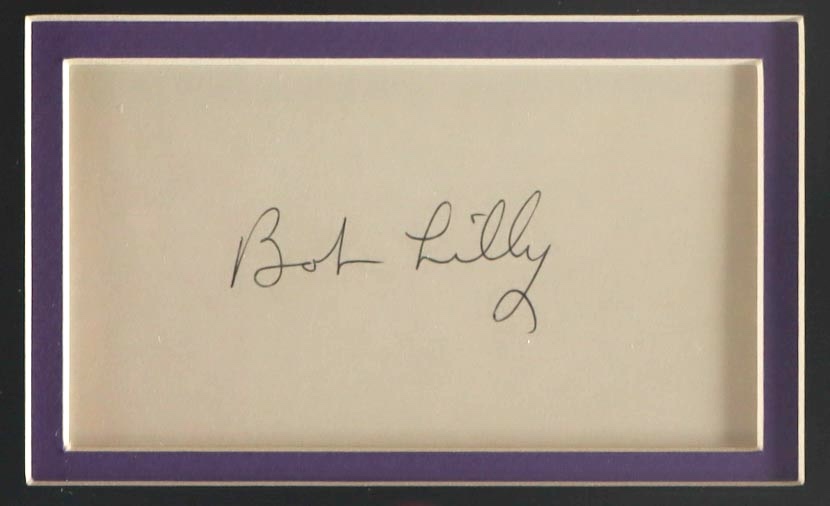 Custom frame measures approximately 15.5" x 23.5" in size and features a cut that has been hand-signed by Bob Lilly (HOF). Please note, there is scuffing throughout the frame.