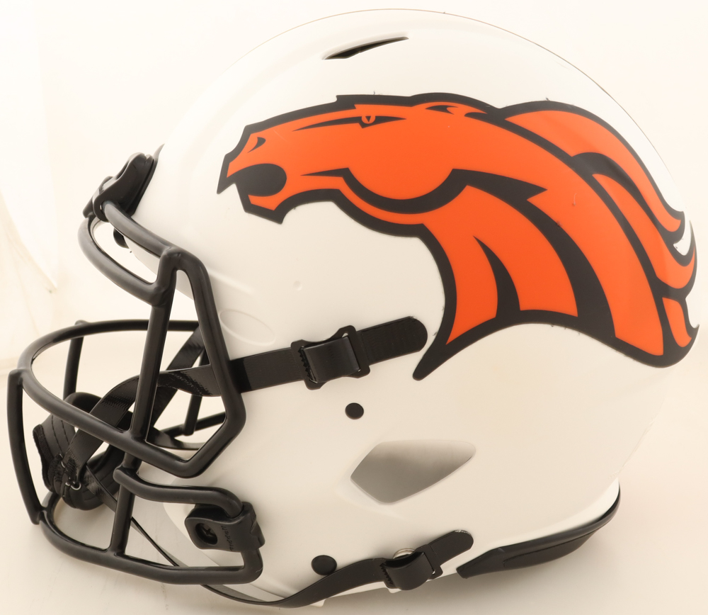 Riddell Denver Broncos full-size authentic on-field Lunar Eclipse Alternate Speed helmet. Hand-signed by Shannon Sharpe (HOF).