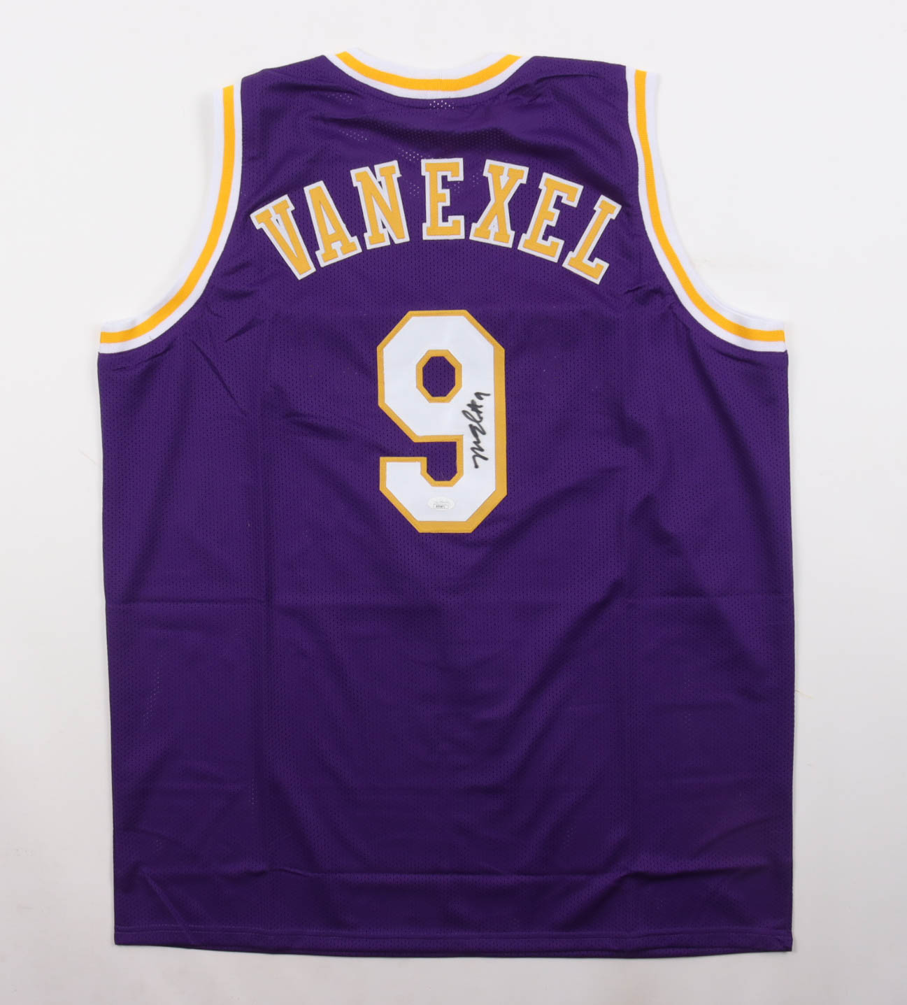 Custom jersey with everything sewn on, size XL. Hand-signed by Nick Van Exel.