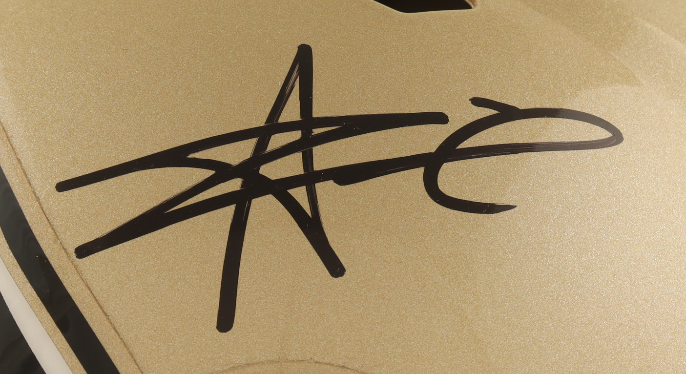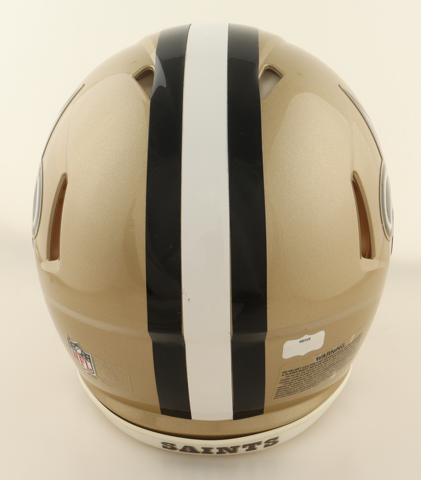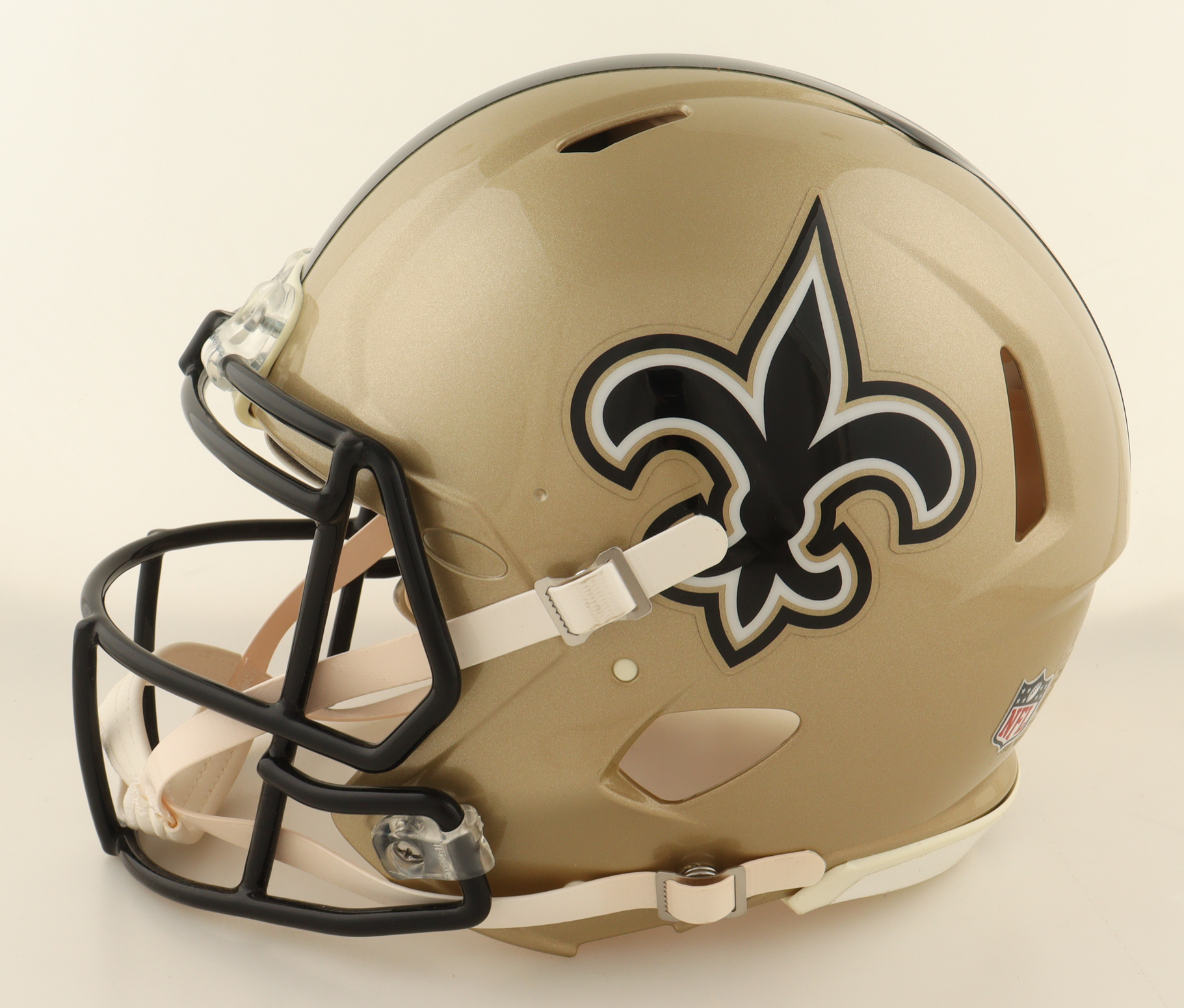 Riddell New Orleans Saints full-size authentic on-field speed helmet has been hand-signed by Alvin Kamara.