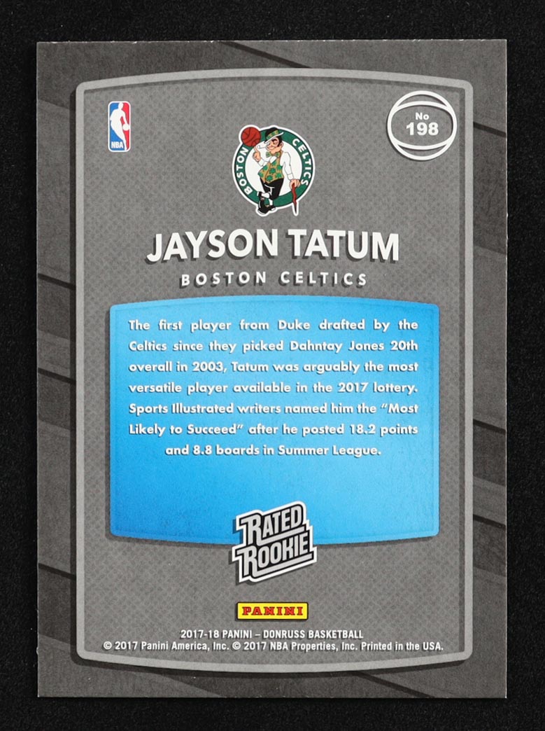Jayson Tatum 2017-18 Panini Donruss Rated Rookie #198 RC