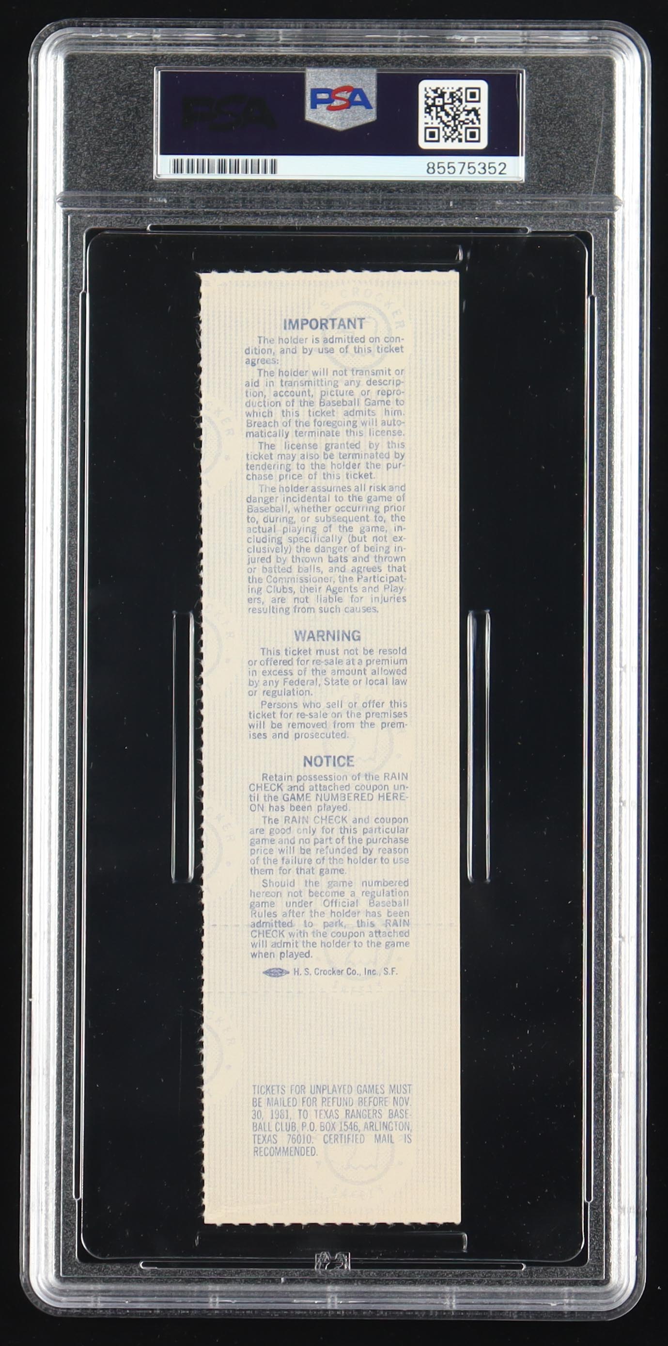1981 Original World Series Game ticket has been hand-signed by Nolan Ryan (Texas Rangers, HOF) and graded (PSA 9). Please see photos for details regarding the item.