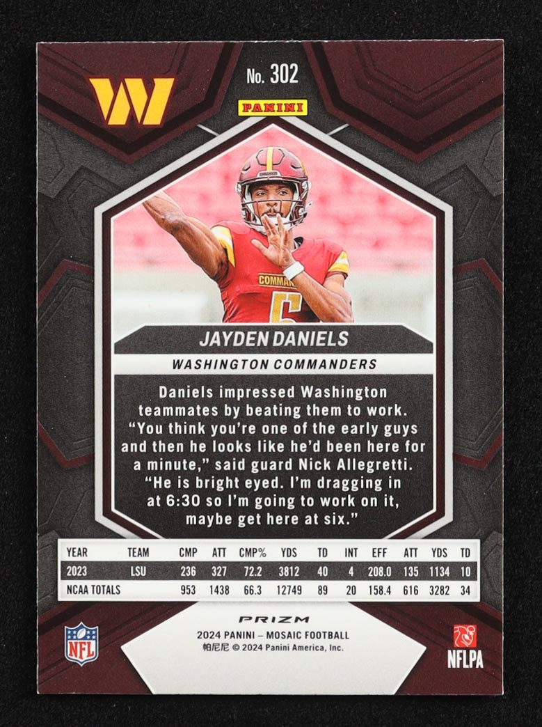 Jayden Daniels 2024 Panini Mosaic Prizm Blue Reactive #302 RC
