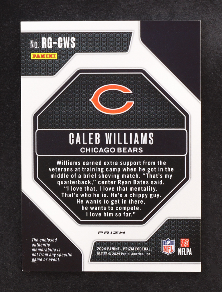 Caleb Williams 2024 Panini Prizm Rookie Gear Purple Pulsar #1 RC