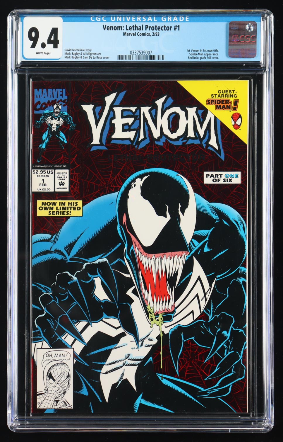 February 1993 "Venom: Lethal Protector" #1 Marvel Comic Book has been graded CGC (9.4). Please see photos for details regarding the condition of the comic.