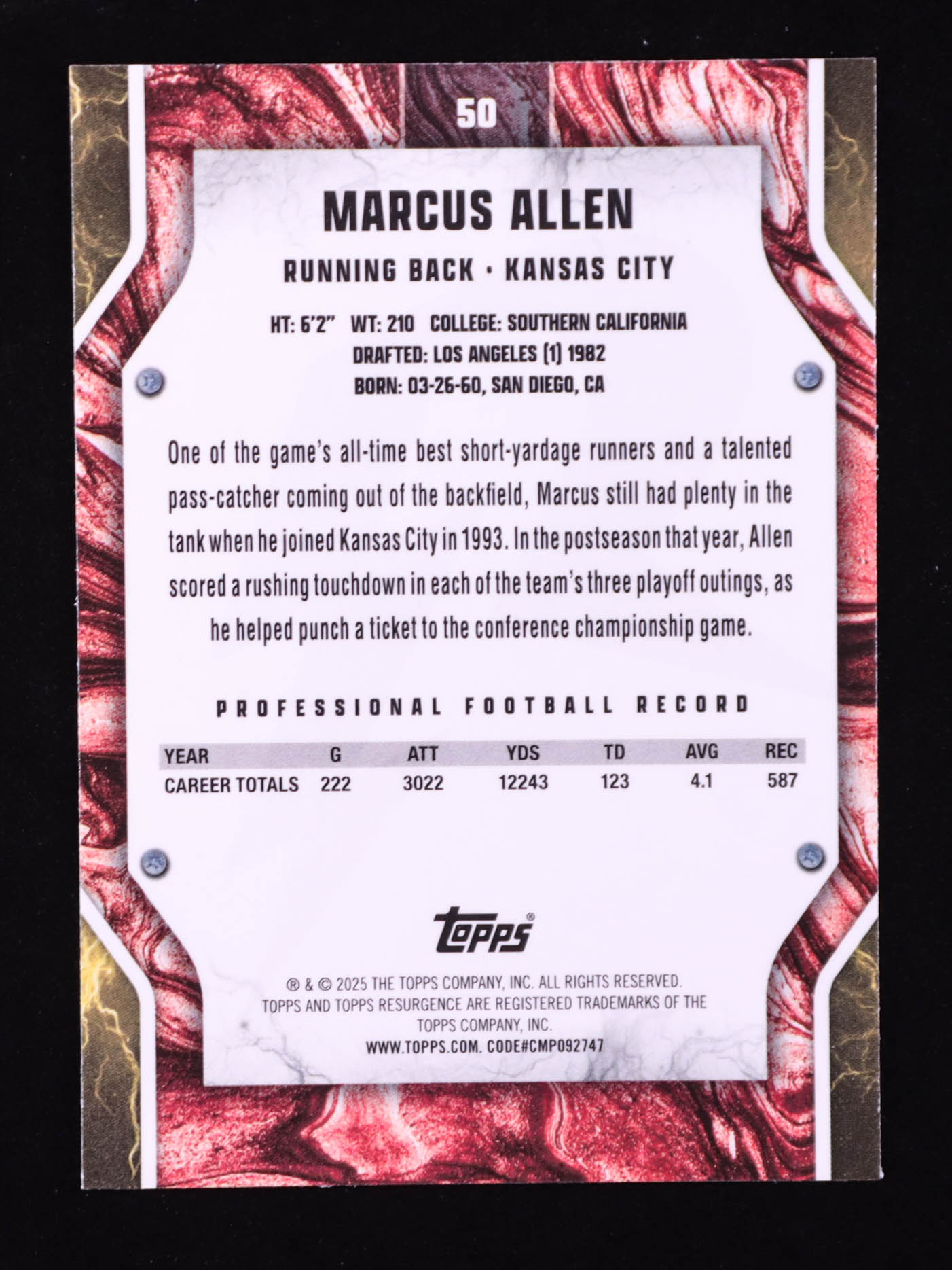 Marcus Allen 2024 Topps Resurgence #50