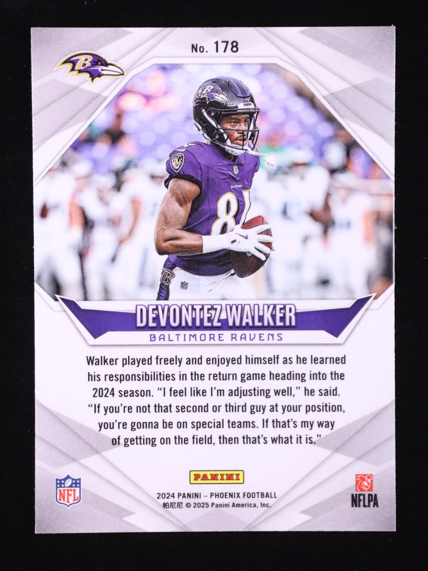 Please see photos for details regarding the condition of the card (Baltimore Ravens).