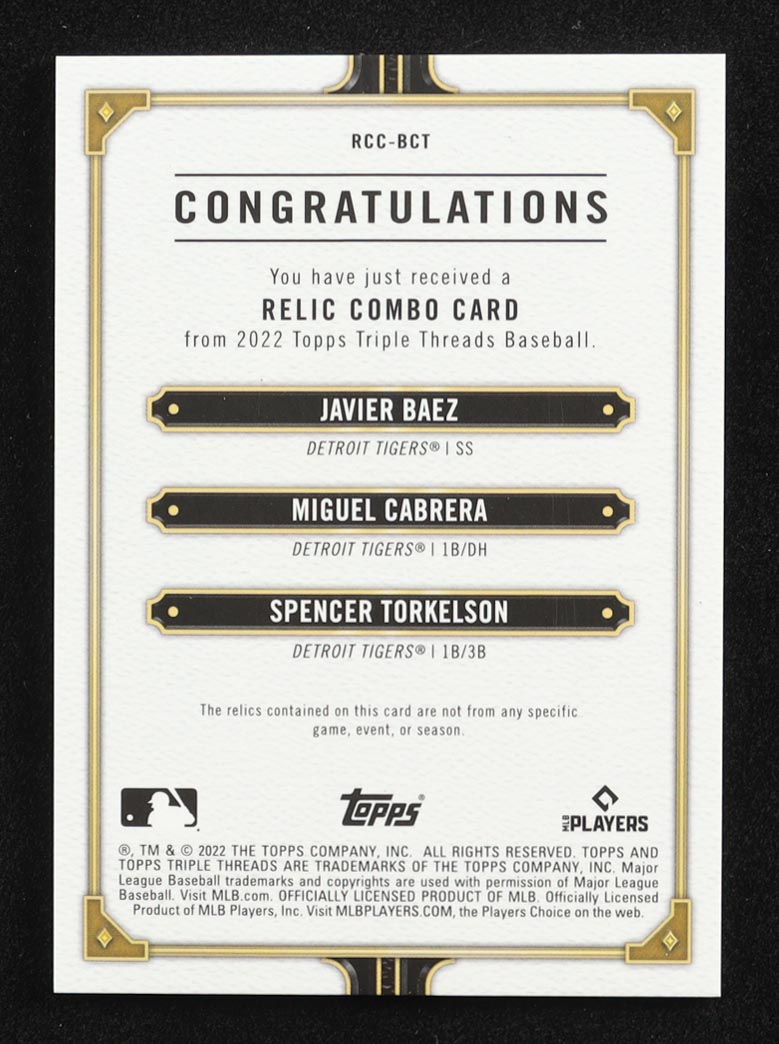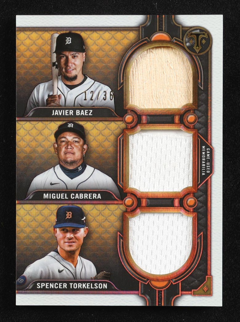Javier Baez / Miguel Cabrera / Spencer Torkelson 2022 Topps Triple Threads Relic Combo Game-Used Memorabilia #RCC-BCT #12/36