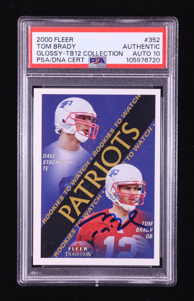 Tom Brady Signed 2000 Fleer Tradition Glossy #352 David Stachelski / Tom Brady RC (PSA Authentic | Auto 10)