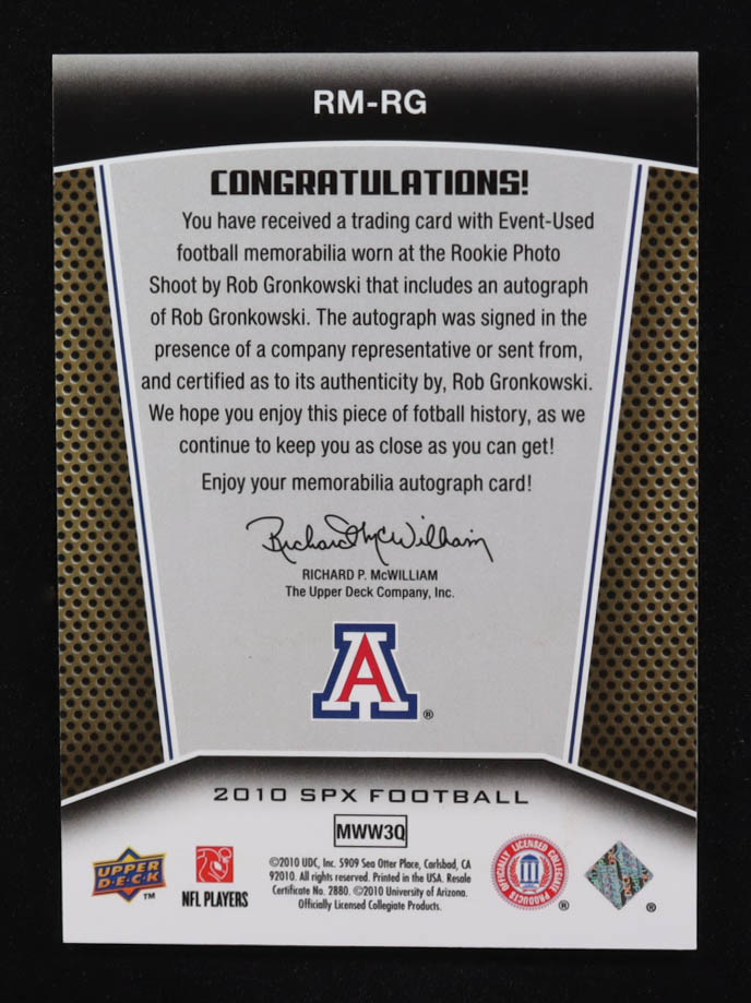 Rob Gronkowski 2010 Upper Deck SPX Rookie Materials Jersey Auto #SDPH-TMN RC #08/20