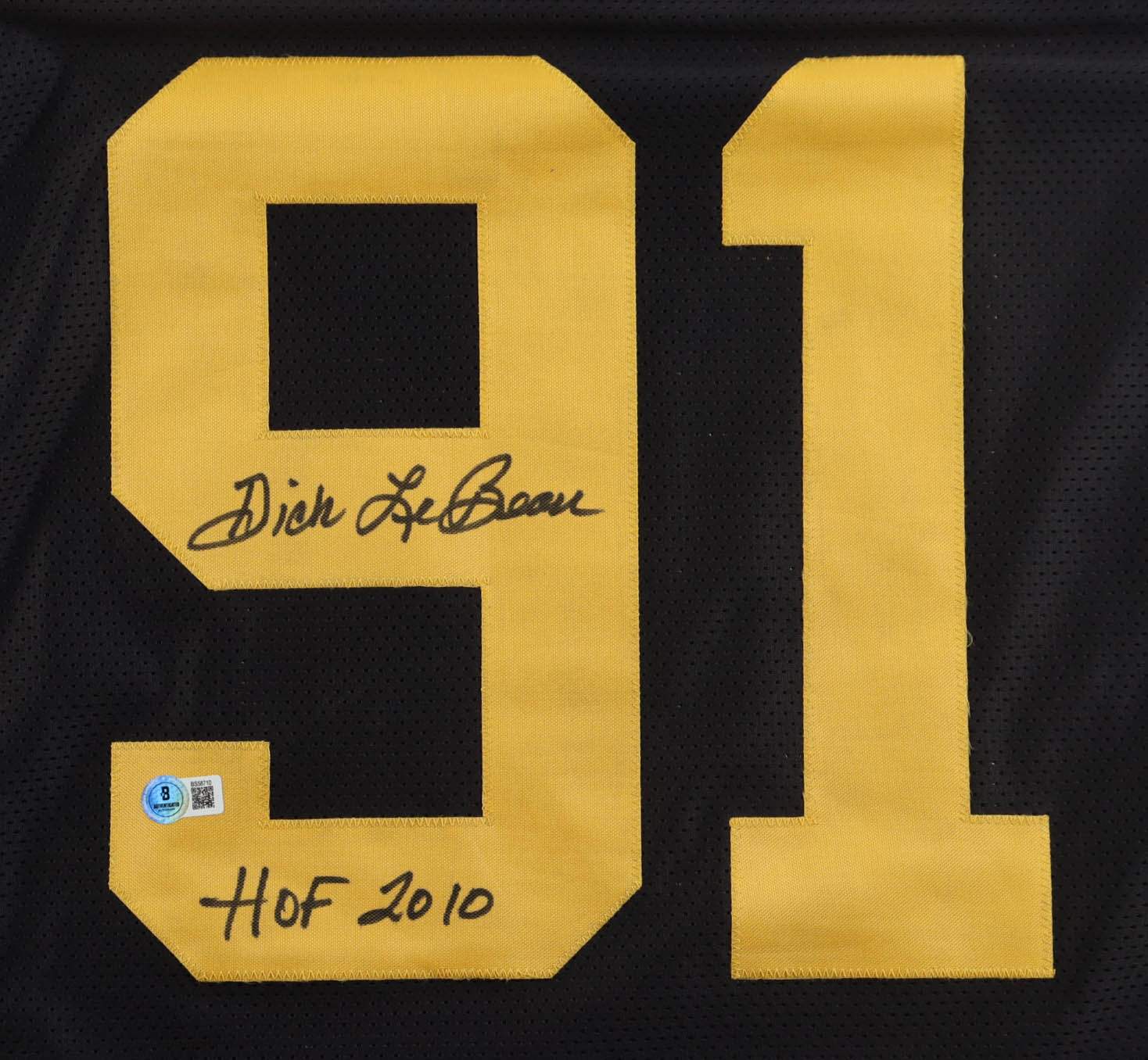 Custom jersey with everything sewn on, size XL. Hand-signed and inscribed by Dick LeBeau (HOF).