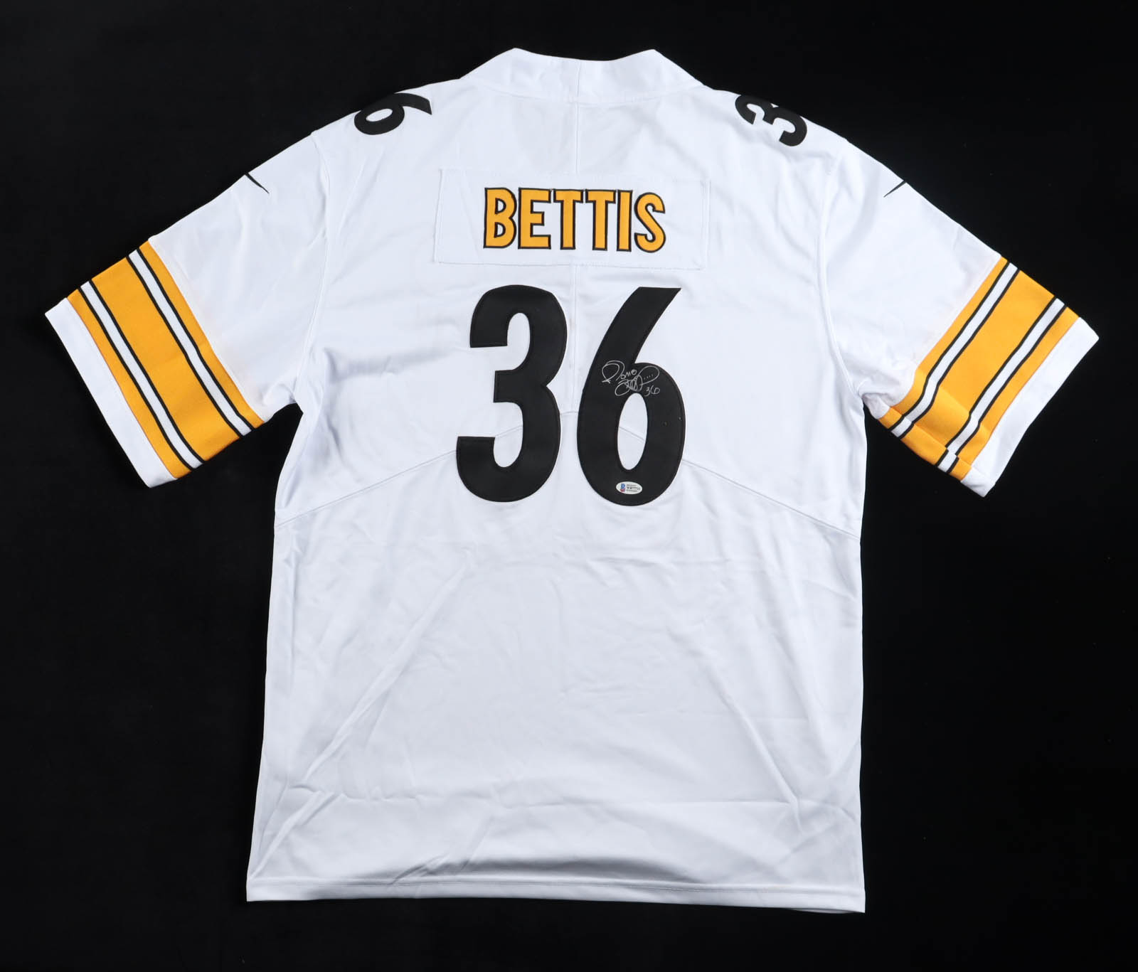 Nike jersey with everything sewn on, size M. Hand-signed by Jerome Bettis (Pittsburgh Steelers, HOF).