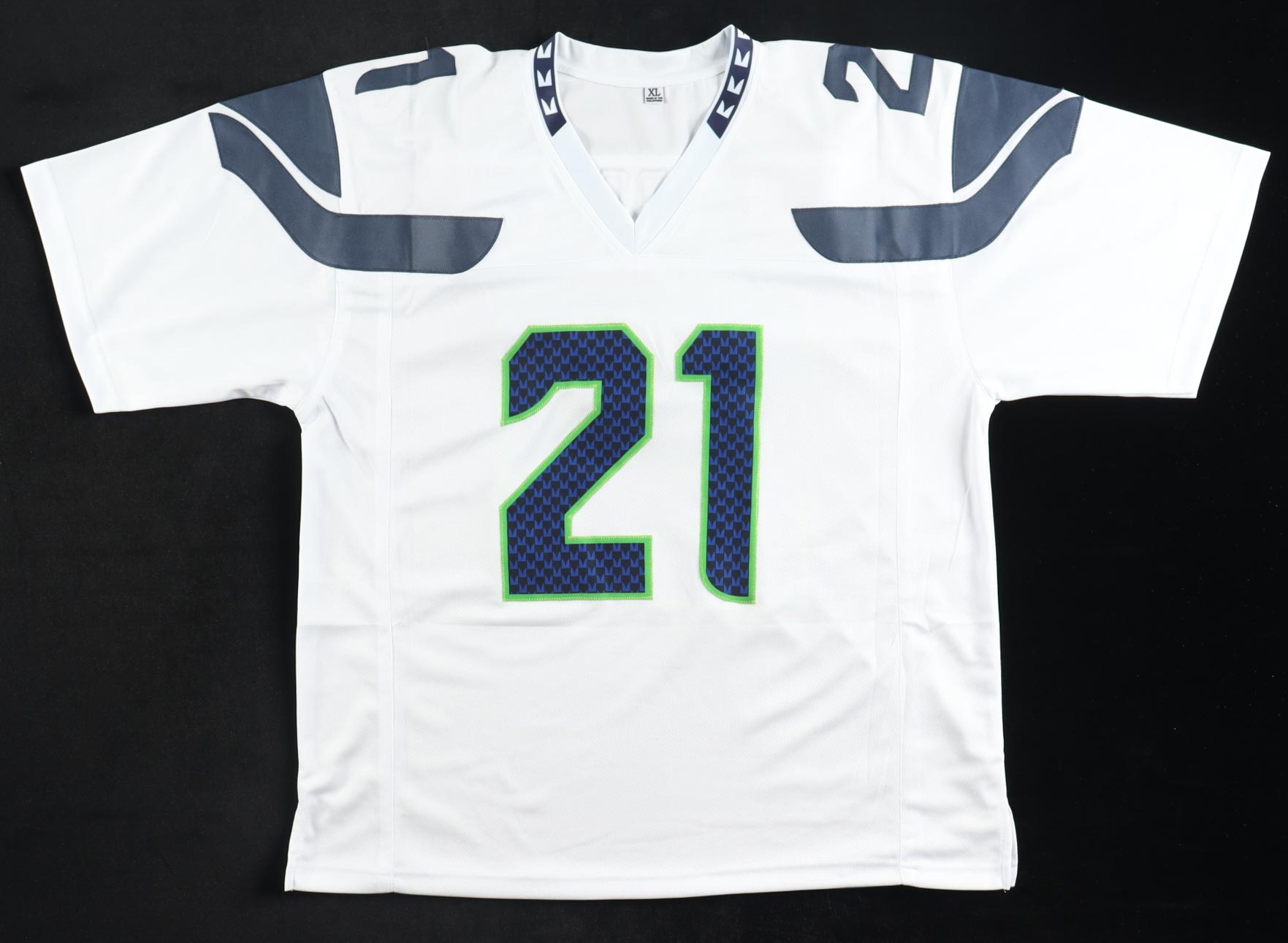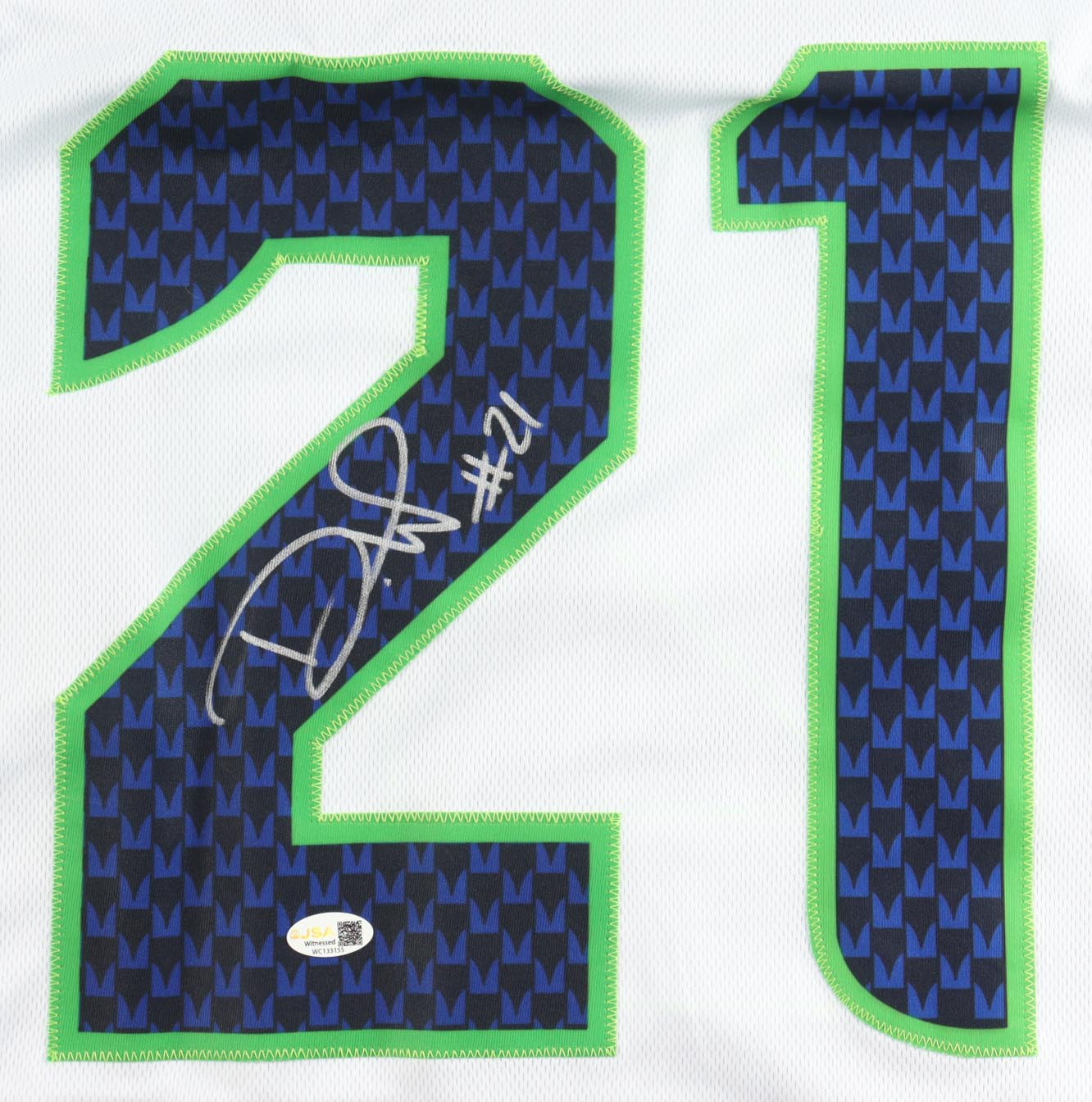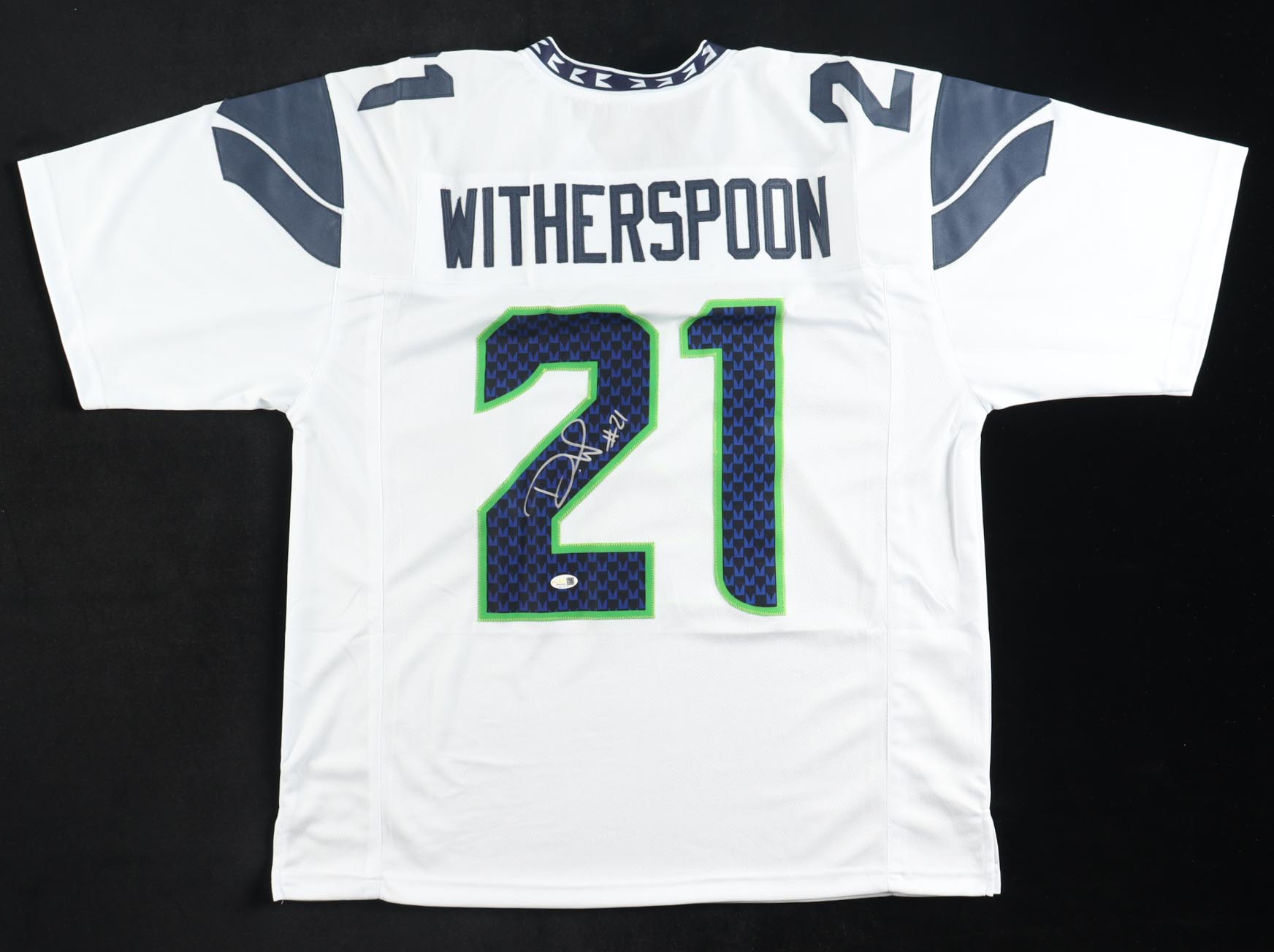 Custom jersey with everything sewn on, size XL. Hand-signed by Devon Witherspoon.