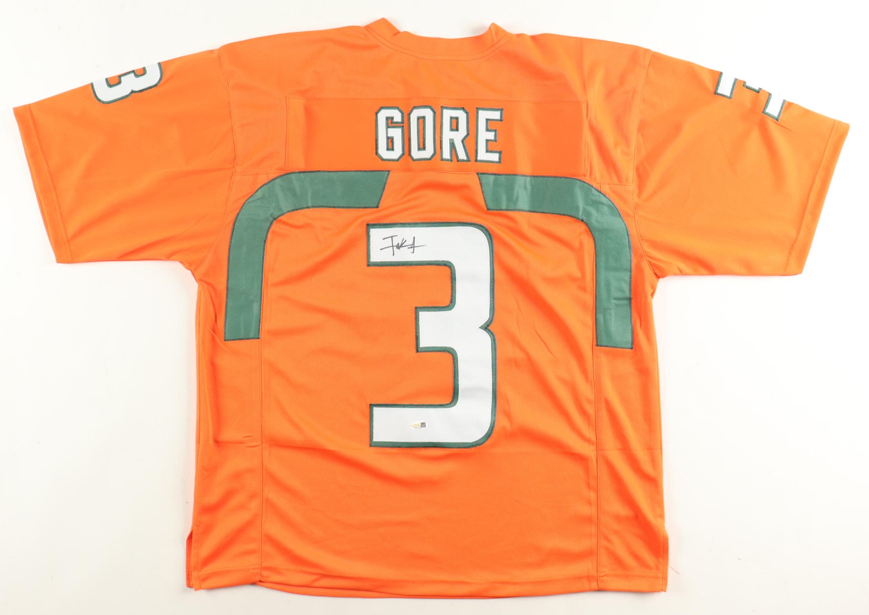 Custom jersey with everything sewn on, size XL. Hand-signed by Frank Gore.