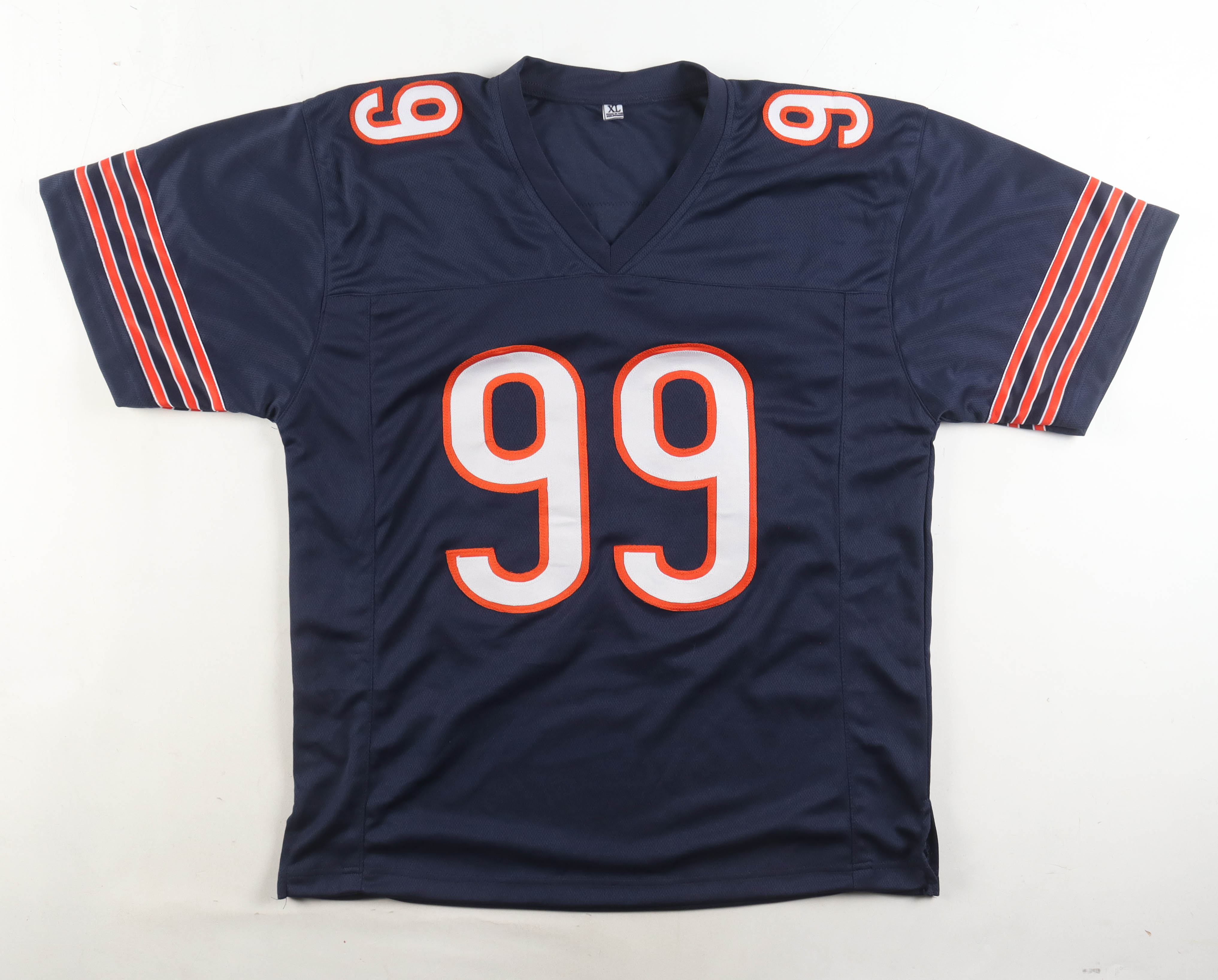 Custom jersey with everything sewn on, size XL. Hand-signed and inscribed by Dan Hampton (Chicago Bears, HOF).