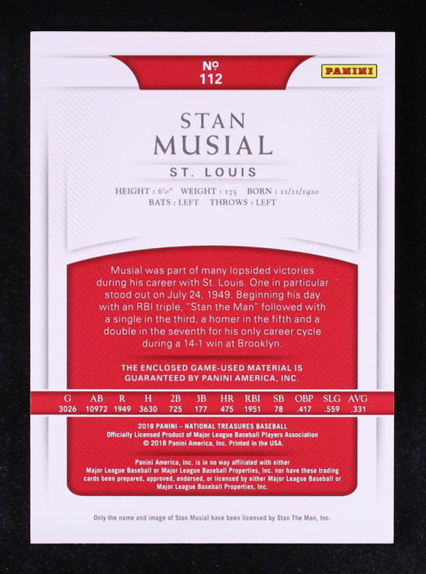 Stan Musial 2018 Panini National Treasures #112 JSY #68/99