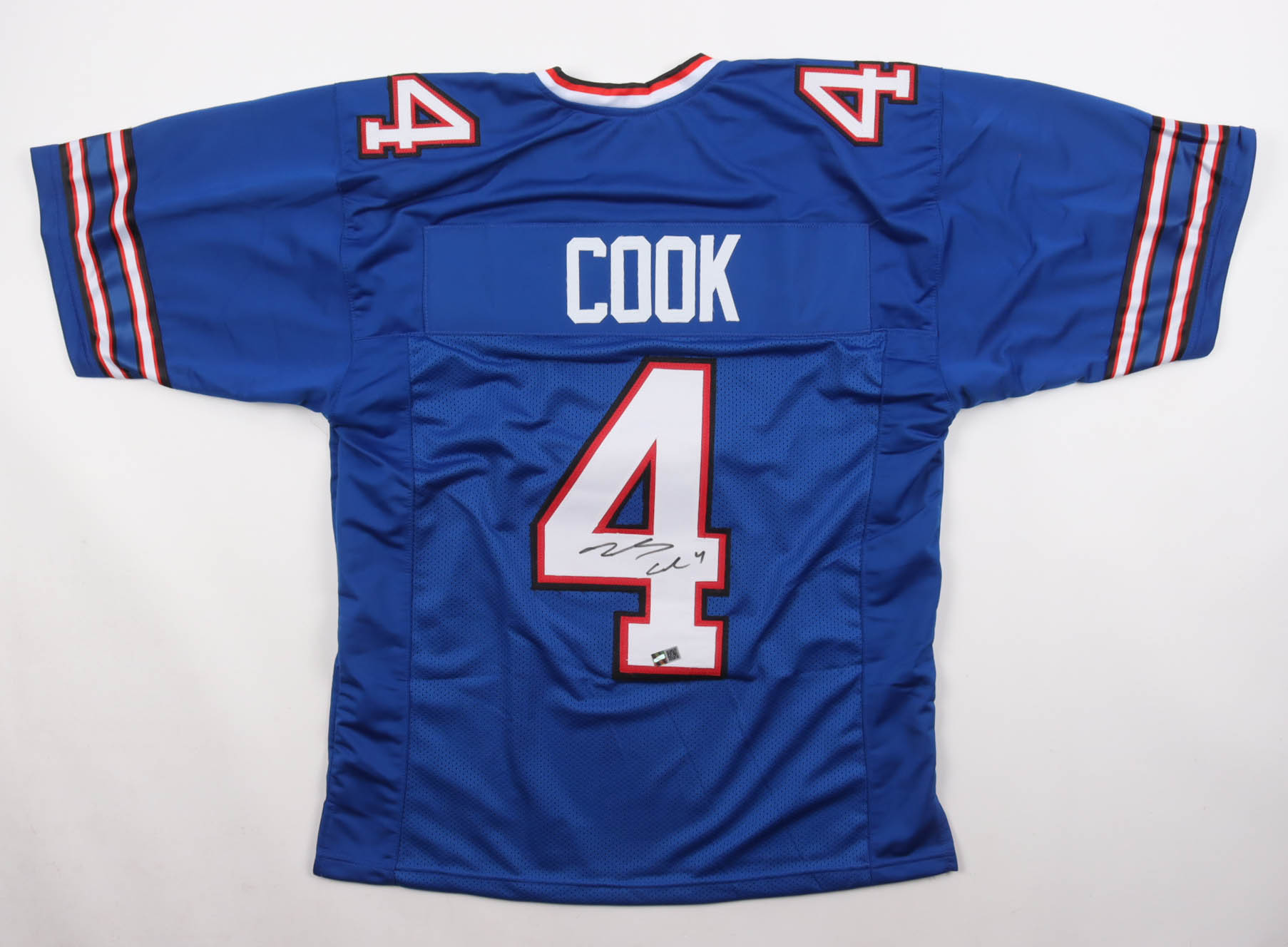 Custom jersey with everything sewn on, size XL. Hand-signed by James Cook.