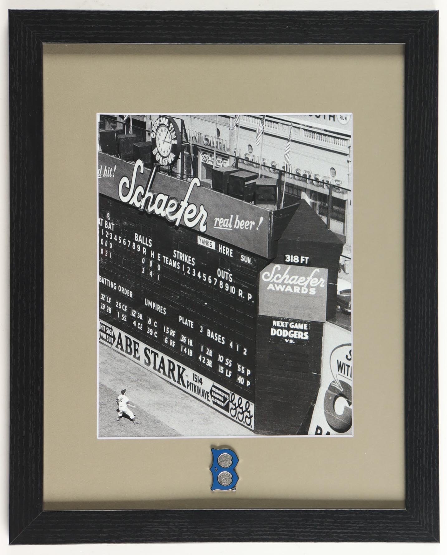 "Ebbetts Field" Custom Framed Photo Display with Brooklyn Dodgers Pin