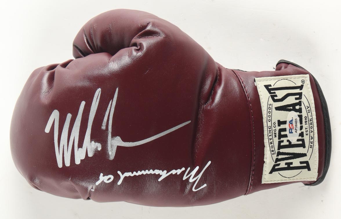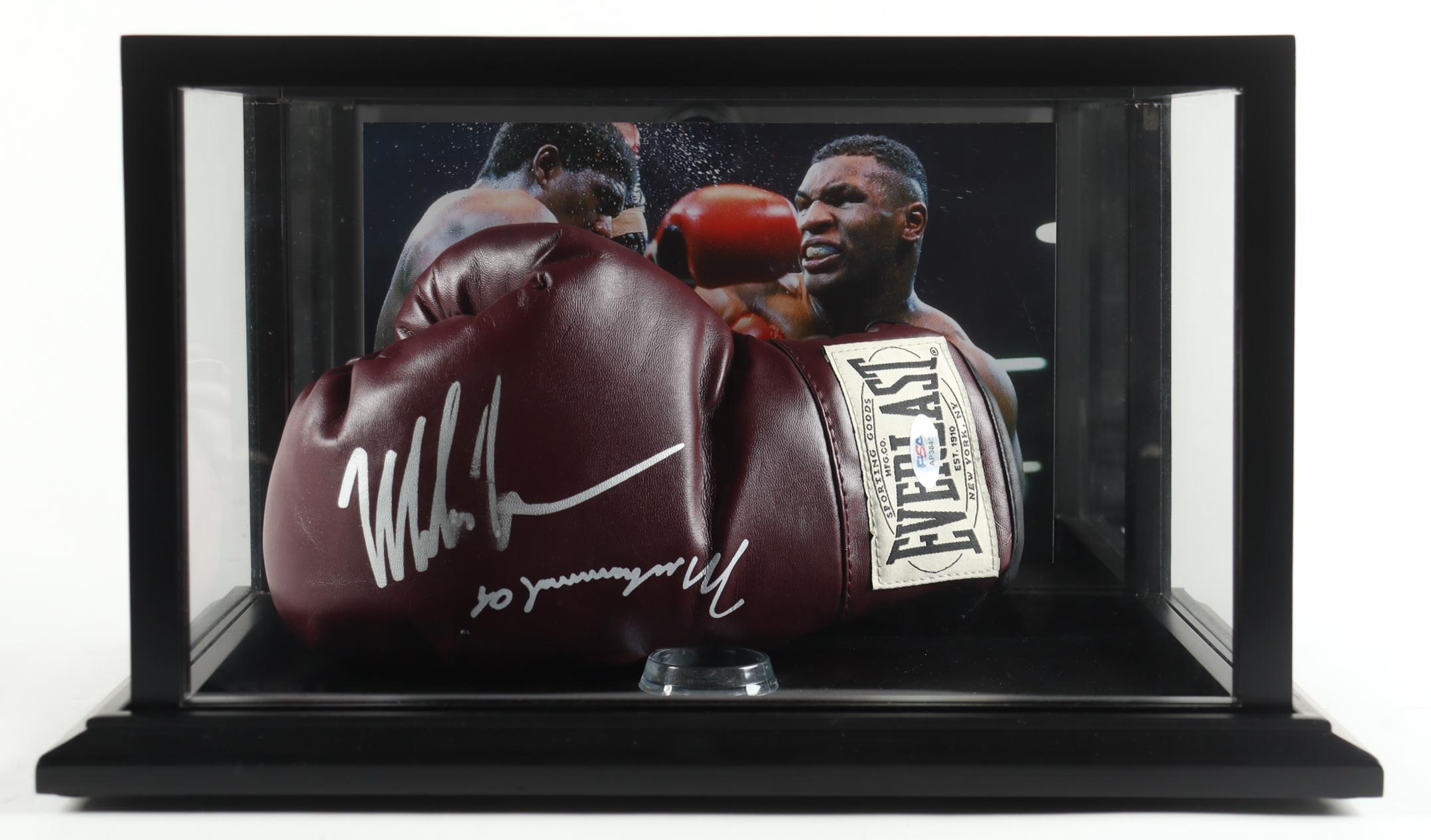 Mike Tyson Signed Everlast 'Muhammad Ali' Boxing Glove with Photo-back Wood Display Case (Tyson & PSA)