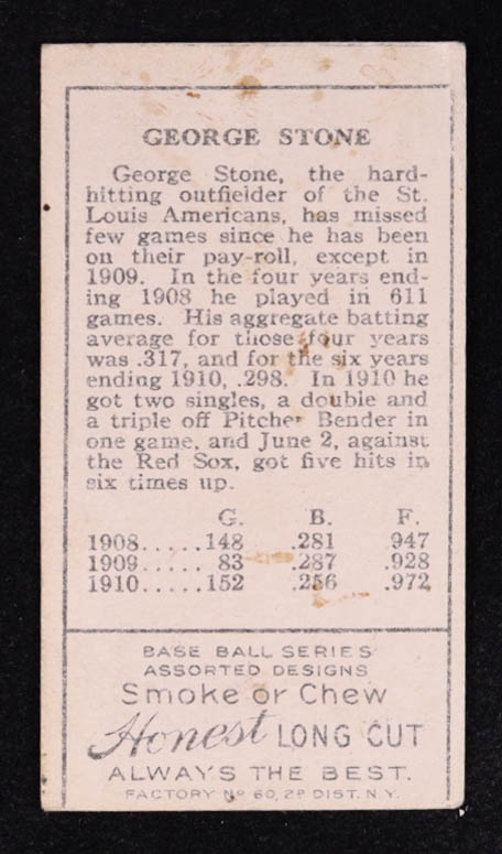 George Stone 1911 T205 Gold Border #183